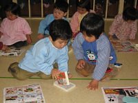 年長児が0・1歳児のクラスに入り、