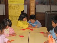 “ザリガニ釣り”を作りました。折り紙難しかったけど、お姉ちゃんが優しく教えてくれました。出来上がって遊ぶ時には、おおはしゃぎでした