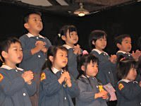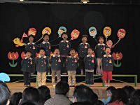 かわいい振りつけで歌ったよ。 元気いっぱい歌ったよ。