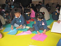好きな型の飛行機を折ります。 誰が一番遠くまで飛ばせるかな