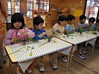 切ったり、挿したり、真剣な顔つきです。 どんなふうに出来るかな