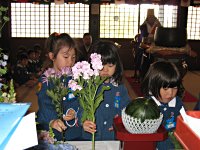 年長児がお釈迦様にお花をお供えし、