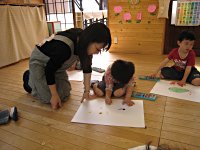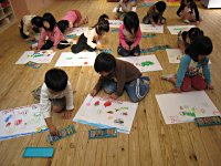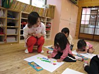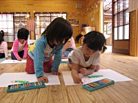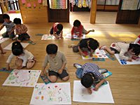 5歳児さん、描いた絵にしっかり色を塗っています