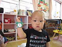 1歳児さんは“カエルさん腕時計”です。