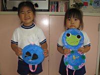 3歳児さんは紙皿を利用して“カエルとおたまじゃくしの時計”を作りました。