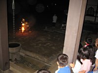 パジャマに着替え、本堂の廊下から花火を見ました。