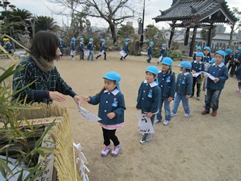 点火され、園長先生がご祈祷を行いました。