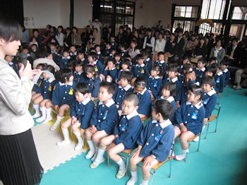 各クラスの担任に、園児一人一人が名前を呼んでもらい、