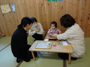 離乳食の進み具合や食事のことについて保護者と話をしました。