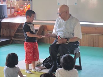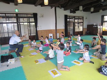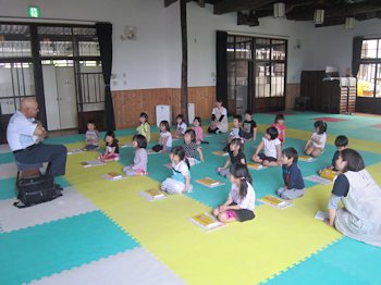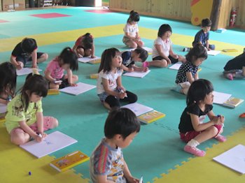 今回初めて参加する4才児さんは、ちょっぴり緊張気味でした。