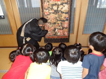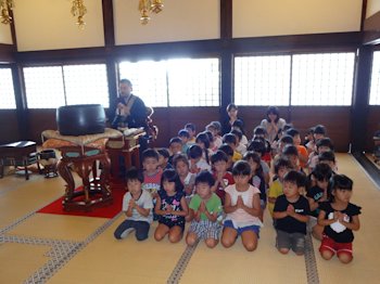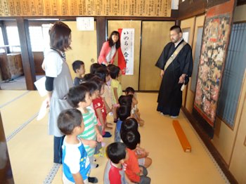 秋のお彼岸を前に、3・4・5才児が本堂でお話を聞きました。