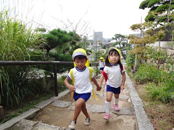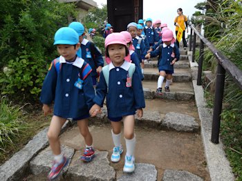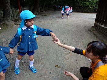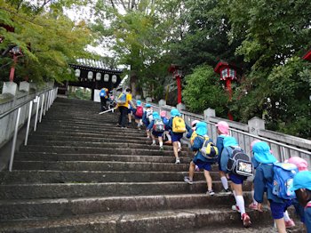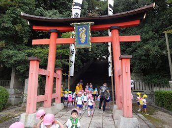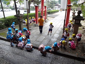 3・4・5才児が、艮神社・八幡神社まで遠足に出かけました。