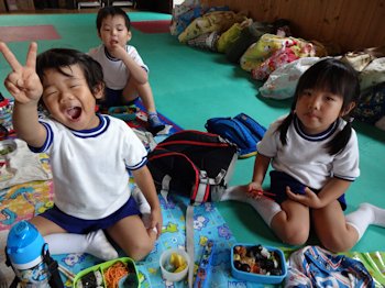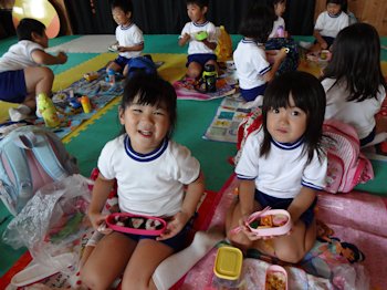 帰って、遊戯室でお弁当を食べました。