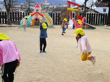 きりん組は、屋外で縄跳びを練習していました。子どもは風の子🤗