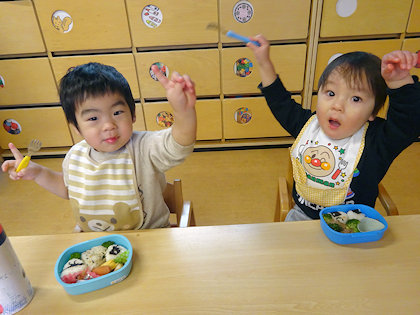 りす組では、手作り弁当を大喜びで食べていました。