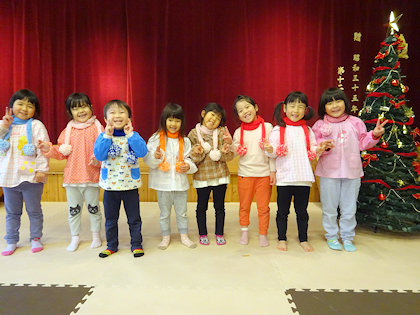 きりん組さん、マフラー作りも楽しみました。完成して嬉しそう(^^)v