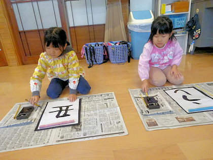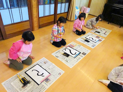 書初め R3.1 2021年1月30日 最終更新日時 : 2021年1月30日 meijyou きりん組は初めての体験。園長先生に筆の使い方等を教えて頂きました。 今年の干支「うし」を書きました。上手に書けたね🤗 ぞう組は平仮名も漢字も両方チャレンジしました。 個性豊かな素敵な書初めが出来上がりました👍