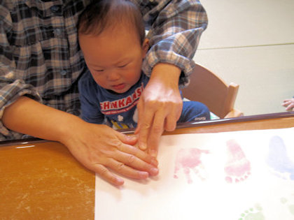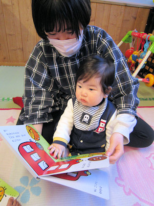 先生のお膝の上で絵本を読んでもらって嬉しそう(^^♪