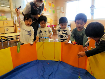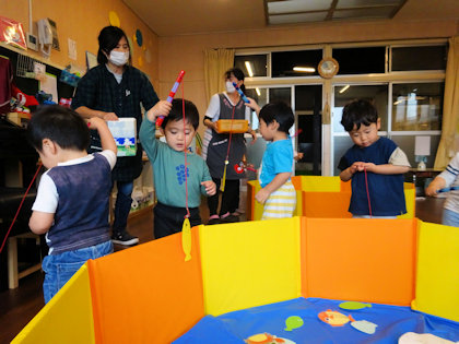 ぱんだ組さんは、お部屋で魚釣りを楽しんでいました🐟