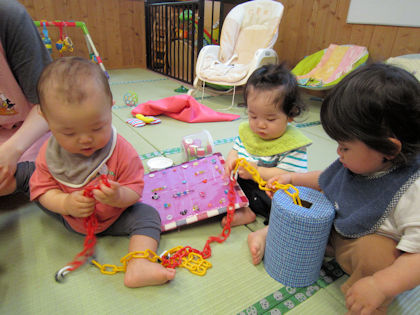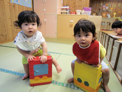 ひよこ組さんをのぞいてみると、お部屋で車に乗ってご機嫌でした。