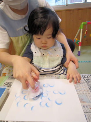 野菜スタンプを楽しんでいました。色んな野菜に触れることができて嬉しそう!