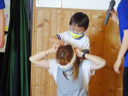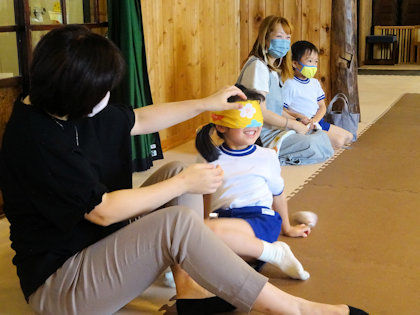今度はお母さんたちも挑戦です! お母さんに目隠ししてあげる姿が微笑ましかったです💕