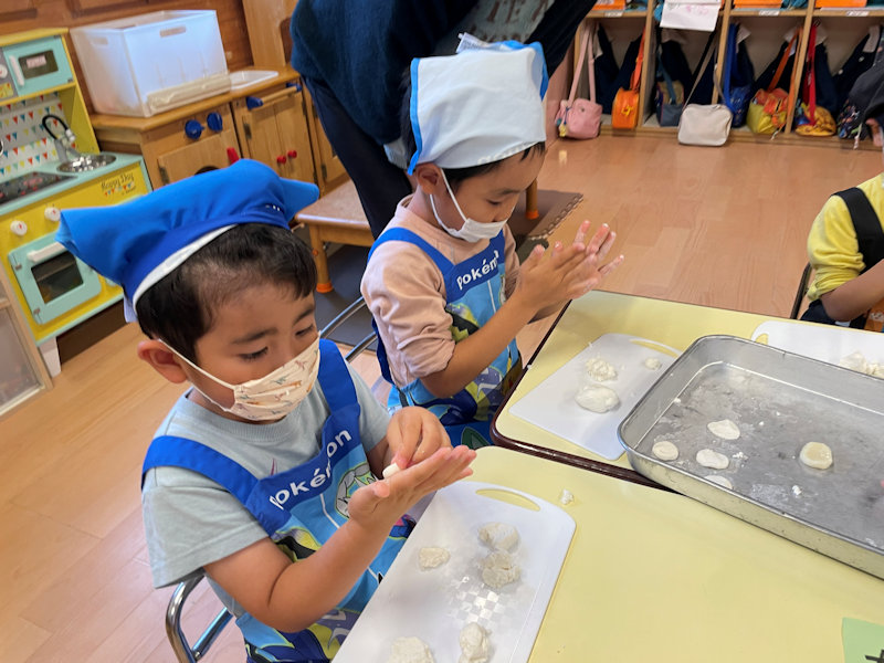 クッキングで白玉団子を作りました。小さく丸めて…