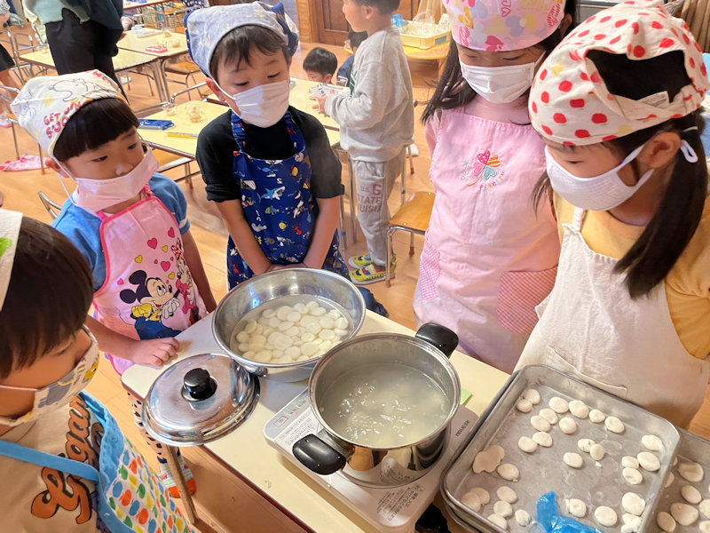 茹でる様子も見守りました。出来上がった団子は、みたらしやきな粉をかけて美味しく頂きました😘