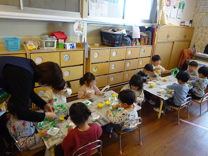 ぱんだ組さん クリスマスに向けてリースの制作をしています。