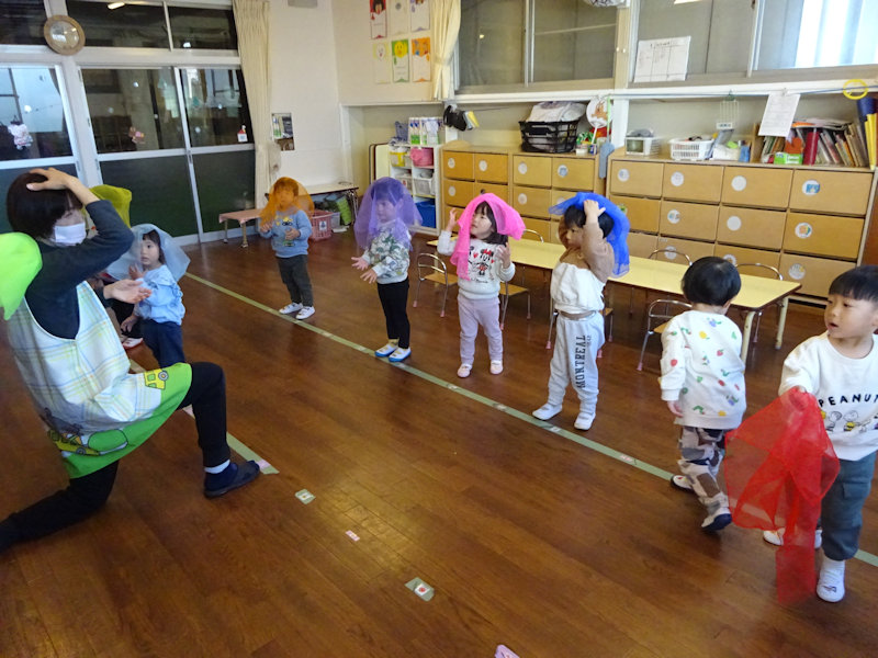 この日は、お部屋で体を動かしながら楽しそうに遊んでいました😄