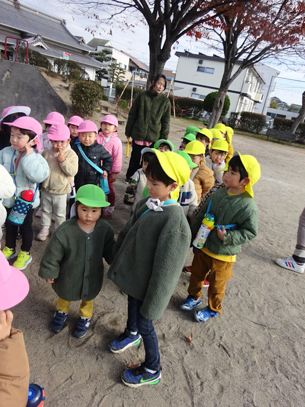 きりん組さん 下のクラスの子と手をつないで近くの公園へ。年下児の面倒を見てくれました😊