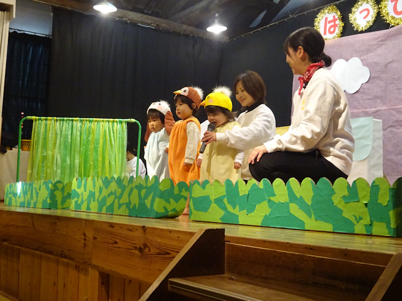 続いてうさぎ組さんの遊戯「かわいいだけじゃだめですか?」アイドルとオタクに扮して、可愛くおかしく楽しませてくれました。