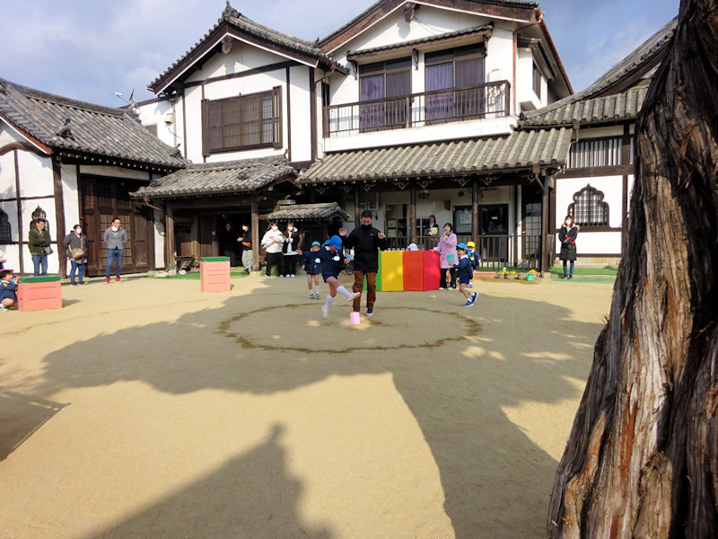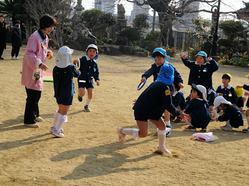 ぞう・きりん組さんは、屋外での活動を参観してもらいました。リレーをしたり…