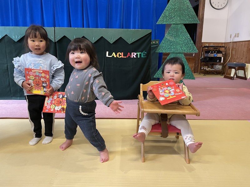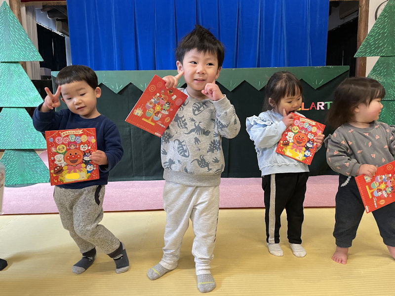 お誕生日会・人形劇 R8.1 2026年2月28日 最終更新日時 : 2026年2月27日 meijyou 1月のお誕生児さんは8名でした! みんな嬉しそう🤗 おめでと~🎉 今月は人形劇団がやって来てくれました!「うさぎのおうち」と、 「ゴリラのパンやさん🍞」をみんなで鑑賞しました😃 とーっても楽しかったね💕