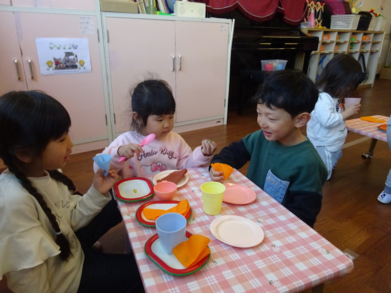 この日は異年齢児との交流で、クレープ屋さんごっこを楽しみました🤗